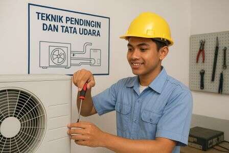 Kompetensi keahlian yang mempelajari sistem pendingin seperti lemari es, freezer, AC split, AC sentral, serta tata udara pada bangunan.